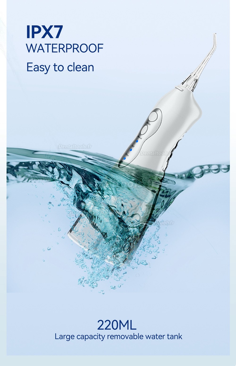 The waterproof design allows you to wash Refine oral irrigator. But long submerging in water is not suggested.
